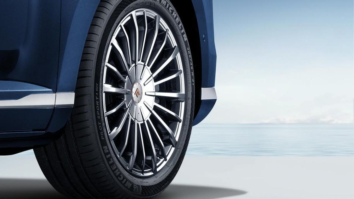 四肢大型旗舰SUV,昊铂HL领有雍容体量,尽显王者气概,搭配21寸桨式悬浮高亮轮毂,特殊彰显霸气。