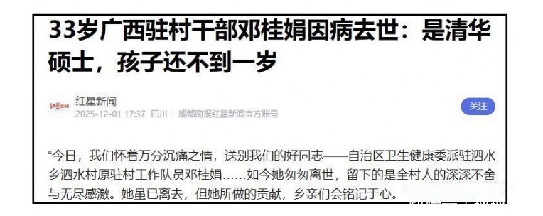 网传清华大学毕业的广西定向选调生邓桂娟不测离世,年仅33岁的她出路本该一派光明,可年青的人命却早早地画上了句号,这个音问刚传出来的技能,许多东说念主齐不敢肯定。