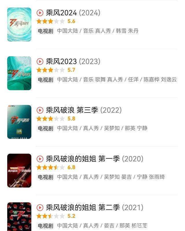 咱先说说前5季的那些姐姐们。那可都是响当当的东谈主物啊,宁静、张雨绮、黄圣依等等,哪一个不是有我方特有的魔力?就拿宁静来说吧,在节目里那但是霸气富余,她的每一次出场都能激发不雅众的热烈扣问。这些姐姐们要么有超强的实力,像张雨绮的唱跳智商固然被东谈主捉弄,但她在舞台上的那种自信是无东谈主能敌的;要么有超高的话题度,比如伊能静,她的一颦一笑都能成为公共茶余饭后的谈资;要么就有弘远的流量,像杨钰莹,那但是些许东谈主的芳华回忆啊。但是呢,你看这前5季的不雅众评分,6.8、5.2、5.8、5.7、5.6,除了第一季向上了6分,后头几季就像坐滑梯通常往着落。我就寻念念啊,这是不是和嘉宾声势的变化接洽系呢?毕竟不雅众们看这个节目,很大一部分原因即是冲着那些有看点的大姐姐们去的。
