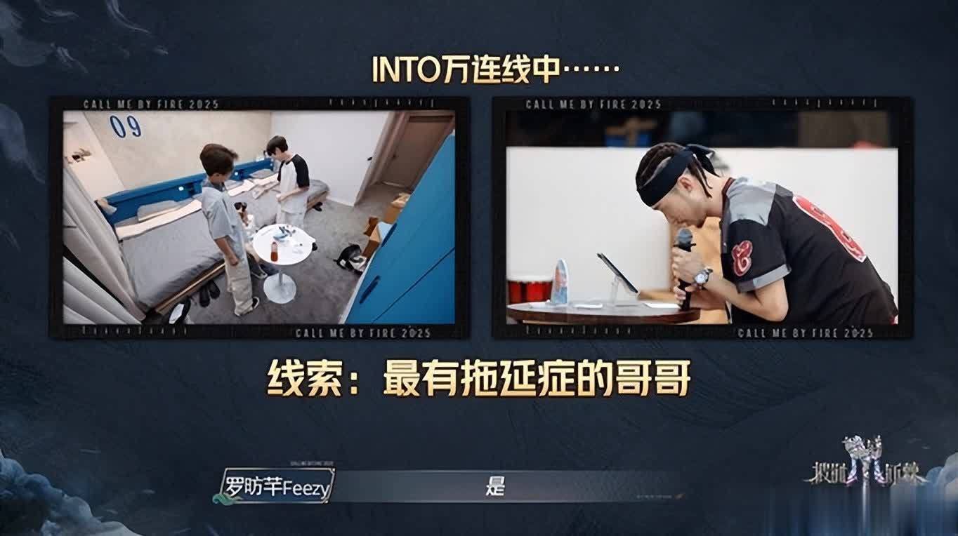 罗昉芊Feezy第二次出来时,节目组给出的痕迹是“最有拖延症的哥哥”。这个标签荒谬有劝诱性,许多哥哥齐以为太难猜了,以为我方也有拖延症呀,许多东谈主齐有,这咋猜?但AK刘彰却相配详情一定是罗昉芊Feezy,因为他知谈罗昉芊Feezy有首歌叫《拖延症》,还很自信地说“这个我不说莫得东谈主猜得出来,因为他有首歌叫《拖延症》。”当饥饿热线一买通,还真就猜中了,此时许多哥哥齐挺骇怪,骇怪咋是罗昉芊Feezy。