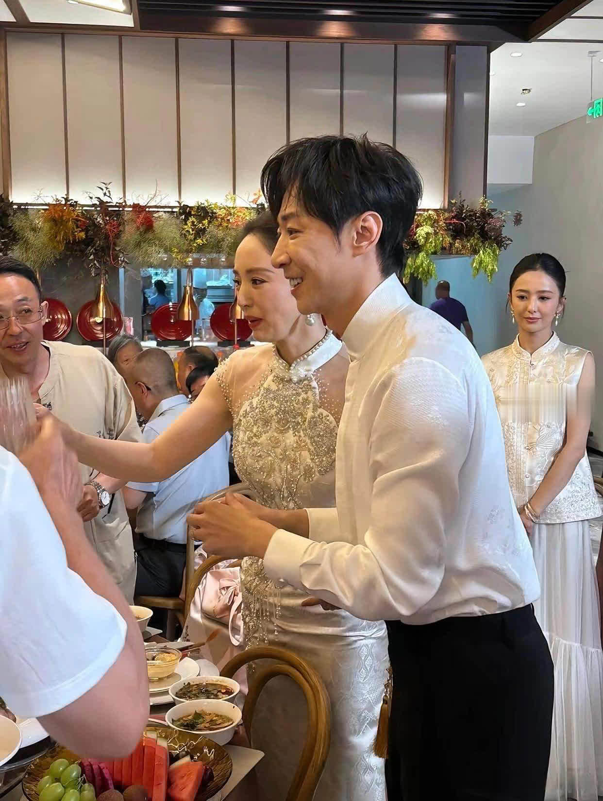 这场登科婚典充满了传统韵味。董璇和张维伊换了多套登科慑服,行了三拜之礼。