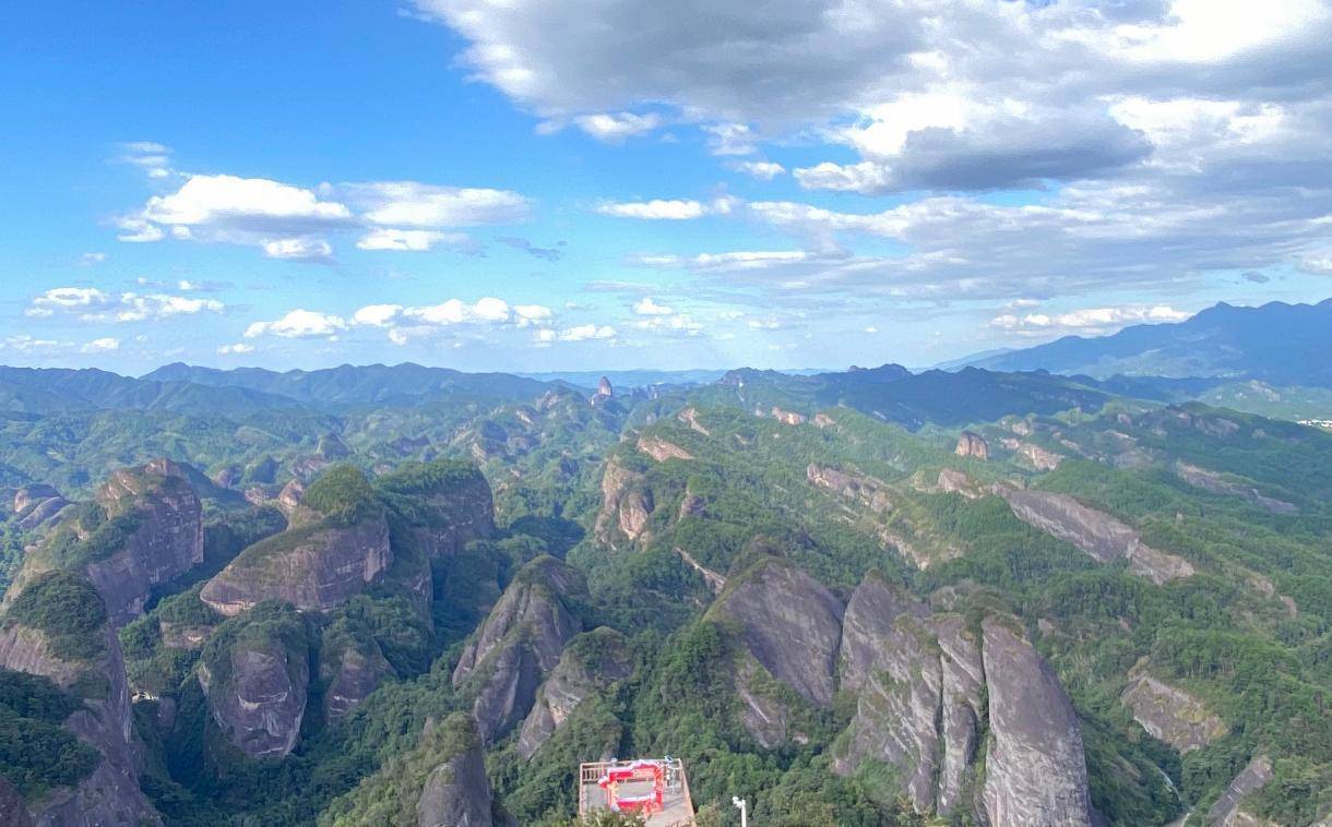 崀山景区是世界当然遗产。咱们坐索说念上山,被山顶的佛音召唤,再决定爬很短的距离到玉阙寺。往下望,石峰拔地而起,神情相反、峰林竞秀、错乱成趣,这是丹霞地貌,契合上几年前强记的地舆教材里那段。