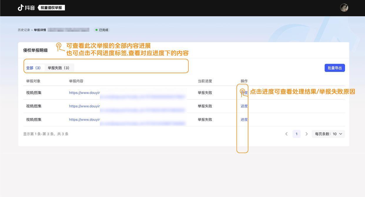 抖音PC端批量侵权举报器具可左证处置进程分类展示
