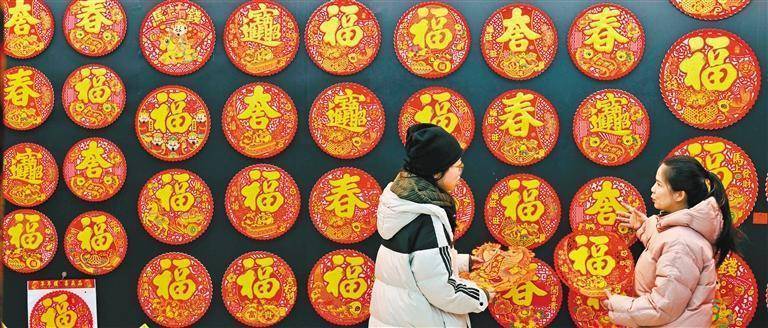 一月二十一日,“天下超市”中国义乌国外商贸城,客商在选购福字。跟着春节相近,商城内各类年货用品不休上新,迎来消耗岑岭。吕 斌摄(中经视觉)