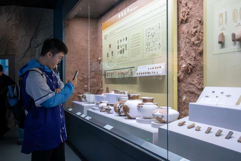 这座于2024年底才认真通达的博物馆,系统呈现了距今7500至3200年的“壳丘头文化”序列,也揭示着南岛语族向海洋搬动的壮阔历程。大学生球员们穿行在“向海而生”“风好扬帆”“南岛艺韵”三大展厅之间,频频在诬捏本质展项和地层归附场景前藏身。有东谈主伸手比对着墙上仿制的史前指摹,有东谈主俯身细看陶器上斑驳的贝齿纹——那是闽台史前先民共同的生存图章。